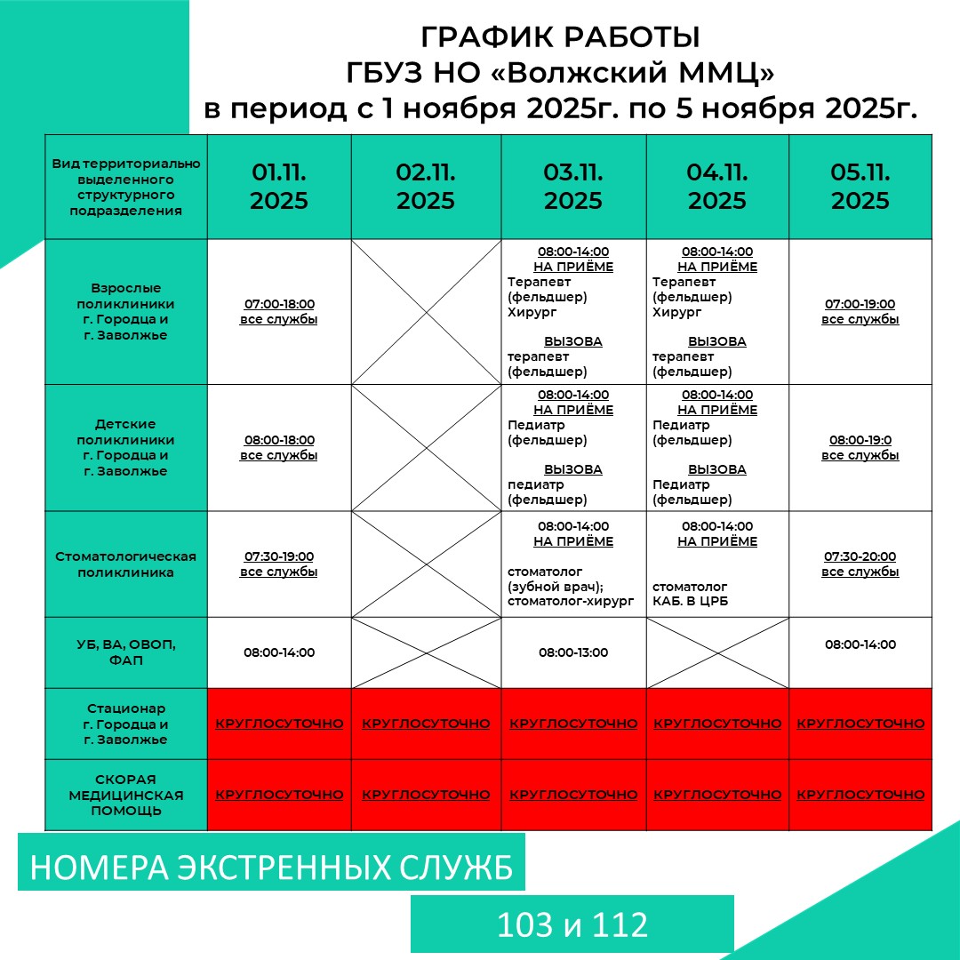 График работы кабинета медико-социальной помощи беременным (ГБУЗ НО "Волжский ММЦ", г.Городец, пл. Пролетарская, д. 36, 2 этаж поликлиники, кабинет № 221)