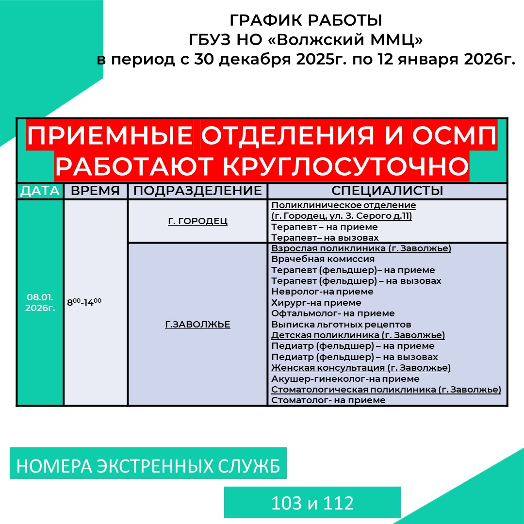 Ответственным лицом за организацию работы по оказанию медицинской помощи участникам Великой Отечественной войны, локальных конфликтов и специальной военной операции в ГБУЗ НО «Волжский ММЦ» является заместитель главного врача по поликлинической работе — Федькина Елена Валерьевна